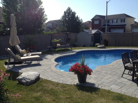 We completed this project in last season in Stittsville, just west of Ottawa. Interlock stone used was Techo-Bloc Mista with Niagara pool coping.